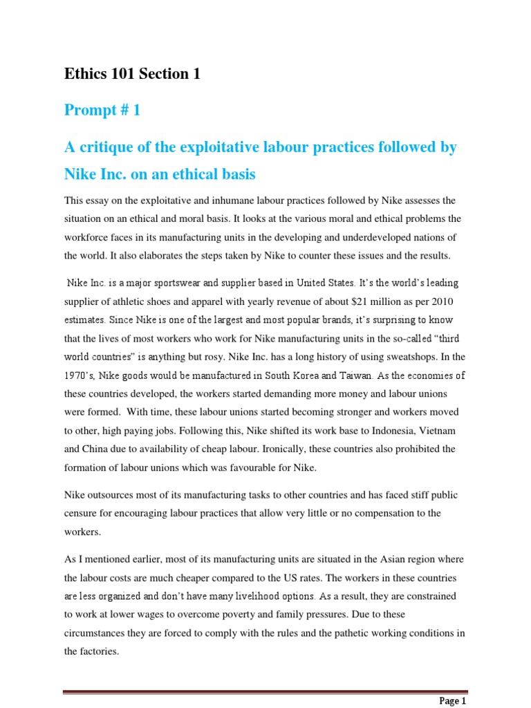 Critique Of The Exploitative Labour Practices Followed By Nike Inc