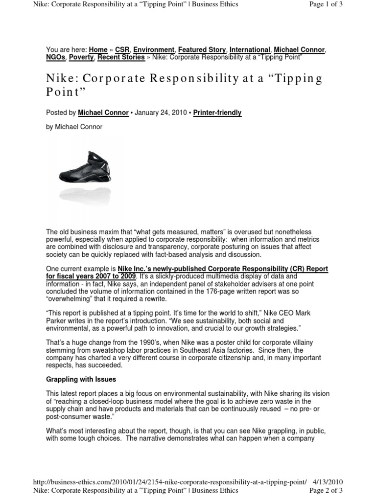 Nike Corporate Responsibility At A Tipping Point Business Ethics