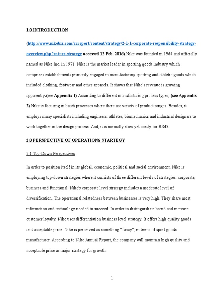 Nike Corporate Level Strategy Nike Inc Operations Management 10