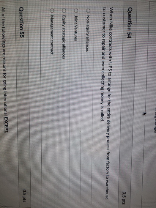 Solved Question 54 0 5 Pts When Nike Contracts With Ups T