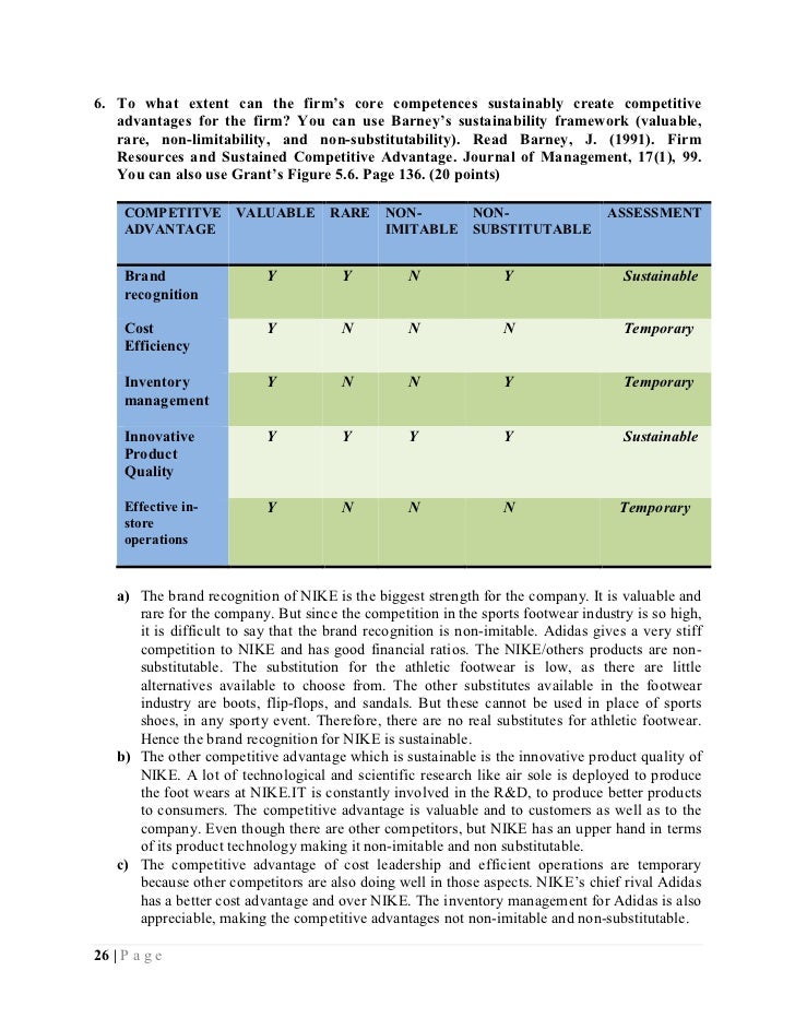 Nike sustainable competitive advantage. In assessing the health of a firms internal environment and competitive advantage the vrio is a. The other competitive advantage which is sustainable. Nikes acknowledgement that it is.