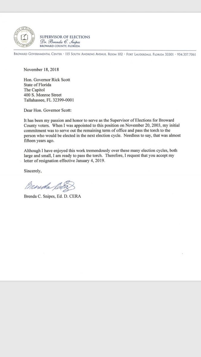 David Smiley On Twitter Brenda Snipes Resignation Letter There S