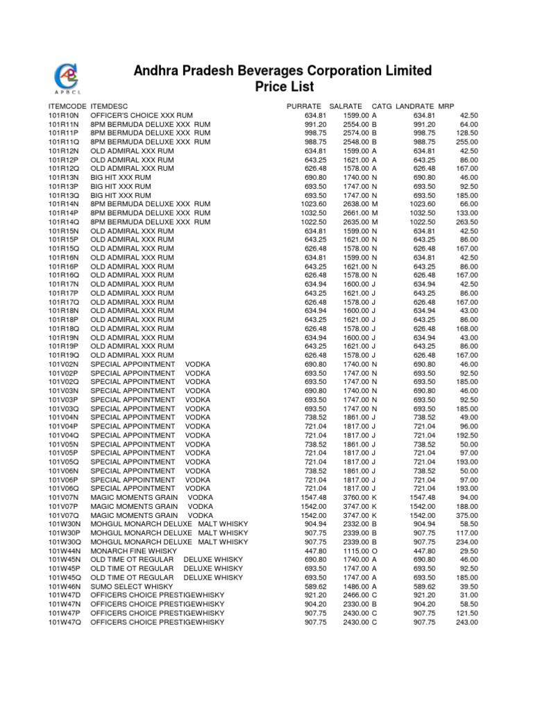 Log in or register for your pricing. For any models not listed please contact us for parts please. The pricing of indian made foreign liquor and beer is made as under.