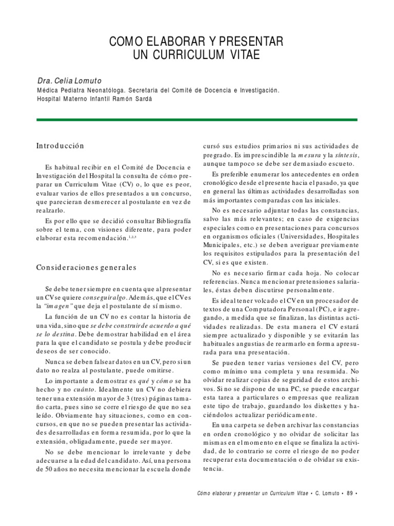 Como Elaborar Un Curriculum Vitae