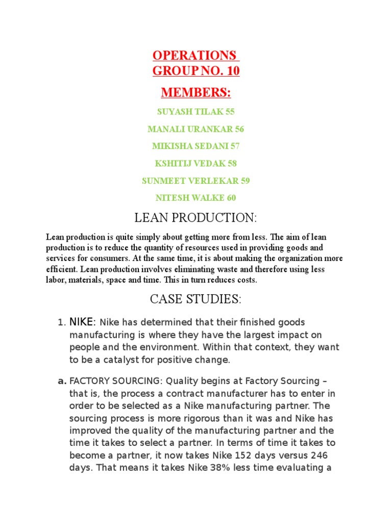 Supply Chain Management Nike Lean Manufacturing