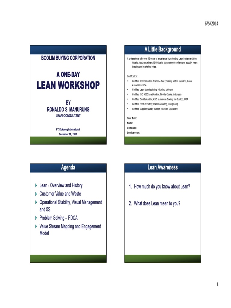 Lean Workshop Lean Manufacturing Quality