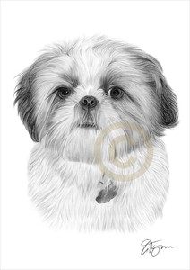 Shih Tzu Arte Dibujo A Lápiz Imprimir A4a3 Firmado Perro Obras De