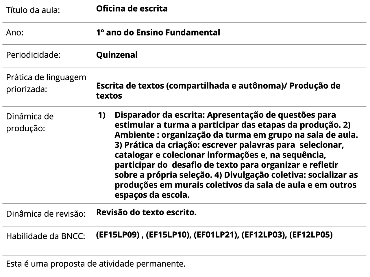 Plano De Aula 1º Ano Língua Portuguesa Oficina De Escrita